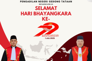 Selasa, 1 Juli 2025 Bertempat di Ruang Command Center Pengadilan Negeri Gedong Tataan telah dilaksanakan Sosialisasi, Monitoring dan Evaluasi Pengiriman Surat Tercatat bersama PT. Pos Indonesia yang dipimpin langsung oleh Ketua Pengadilan Negeri Bapak Nugraha Medica Prakasa, S.H., M.H., dan dihadiri oleh Para Hakim, Panitera, Sekretaris, Panitera Muda Perdata, Para Jurusita,…