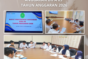 Senin, 15 September 2026. Di Ruang Rapat Ketua, telah dilaksanakannya Rapat Penyusunan Anggaran DIPA 03 Tahun Anggaran 2026 yang dihadiri oleh Ketua Pengadilan Negeri Gedong Tataan Bapak Nugraha Medica Prakasa, S.H., M.H., Wakil Ketua Pengadilan Negeri Gedong Tataan Bapak Dr. Edy Siong, S.H., M.Hum., Panitera, Sekretaris, Bendahara Pengeluaran, Para Panmud…