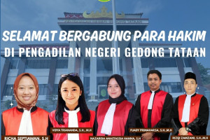 Kamis, 31 Juli 2025 Telah terselenggarakannya Pengantar Alih Tugas Hakim Pengadilan Negeri Gedong Tataan yaitu Ibu Dessy Retnotanjungsari, S.H., M.Kn, Ibu Vega Sarlita, S.H., Ibu Muthia Wulandari, S.H., M.H., Ibu Septina, S.H., M.H. yang berlangsung di Ruang Sidang Utama Pengadilan Negeri Gedong Tataan. Acara terselenggara dengan khidmat dan meriah dengan…