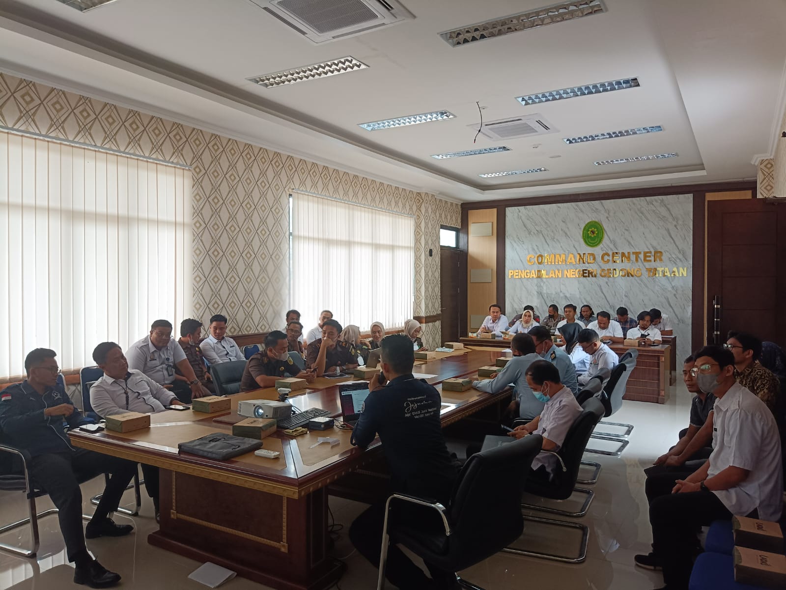 Setelah itu, diadakannya Training Penerapan Aplikasi E-Berpadu di Ruang Command Center Pengadilan Negeri Gedong Tataan oleh Panitera Muda Pidana Bapak Rahmat Yannuar, S.T., S.H.