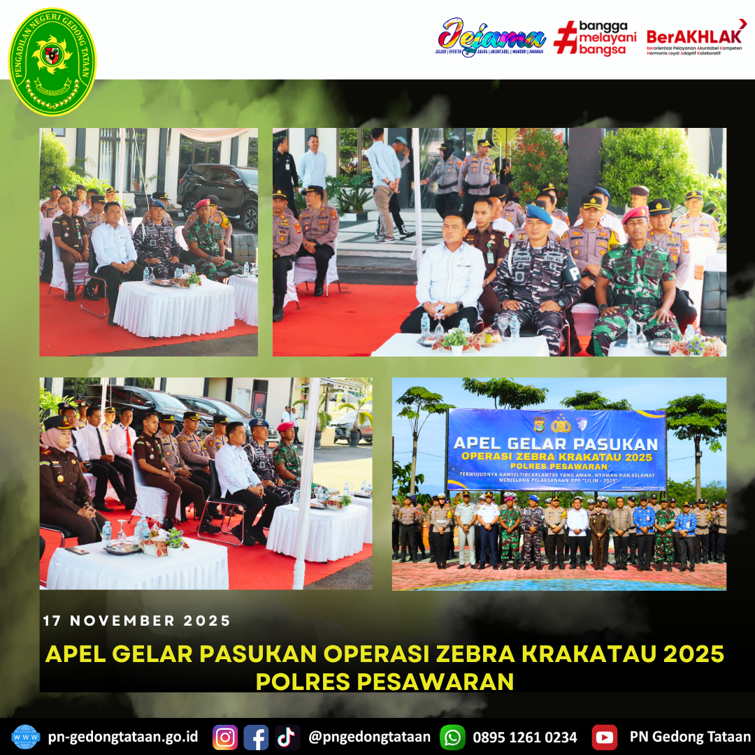 Senin, 17 November 2025. Ketua Pengadilan Negeri Gedong Tataan Bapak Nugraha Medica Prakasa, S.H., M.H. Menghadiri Kegiatan Apel Gelar Pasukan Operasi Zebra Krakatau 2025 Polres Pesawaran.