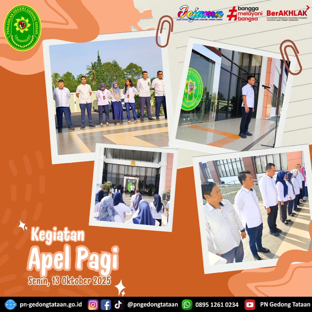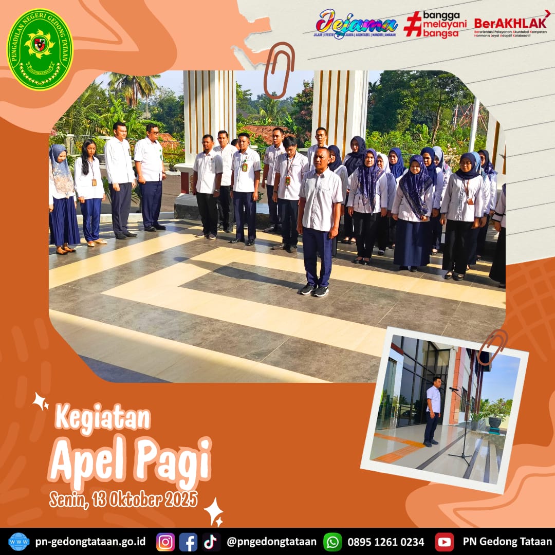 Bertindak sebagai Pembina apel yaitu Ketua Pengadilan Negeri Gedong Tataan Bapak Nugraha Medica Prakasa, S.H., M.H dan Bapak Erwin Widiarto bertindak sebagai Pemimpin apel.