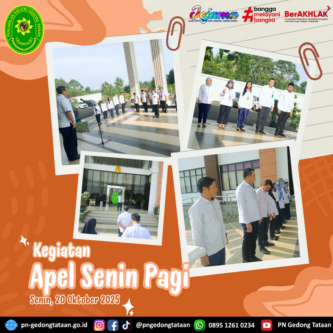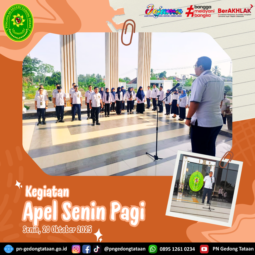 Bertindak sebagai Pembina apel yaitu Hakim Pengadilan Negeri Gedong Tataan Bapak M. Rizqi Zamzami, S.H., M.H dan Bapak Dian Epriawan bertindak sebagai Pemimpin apel.