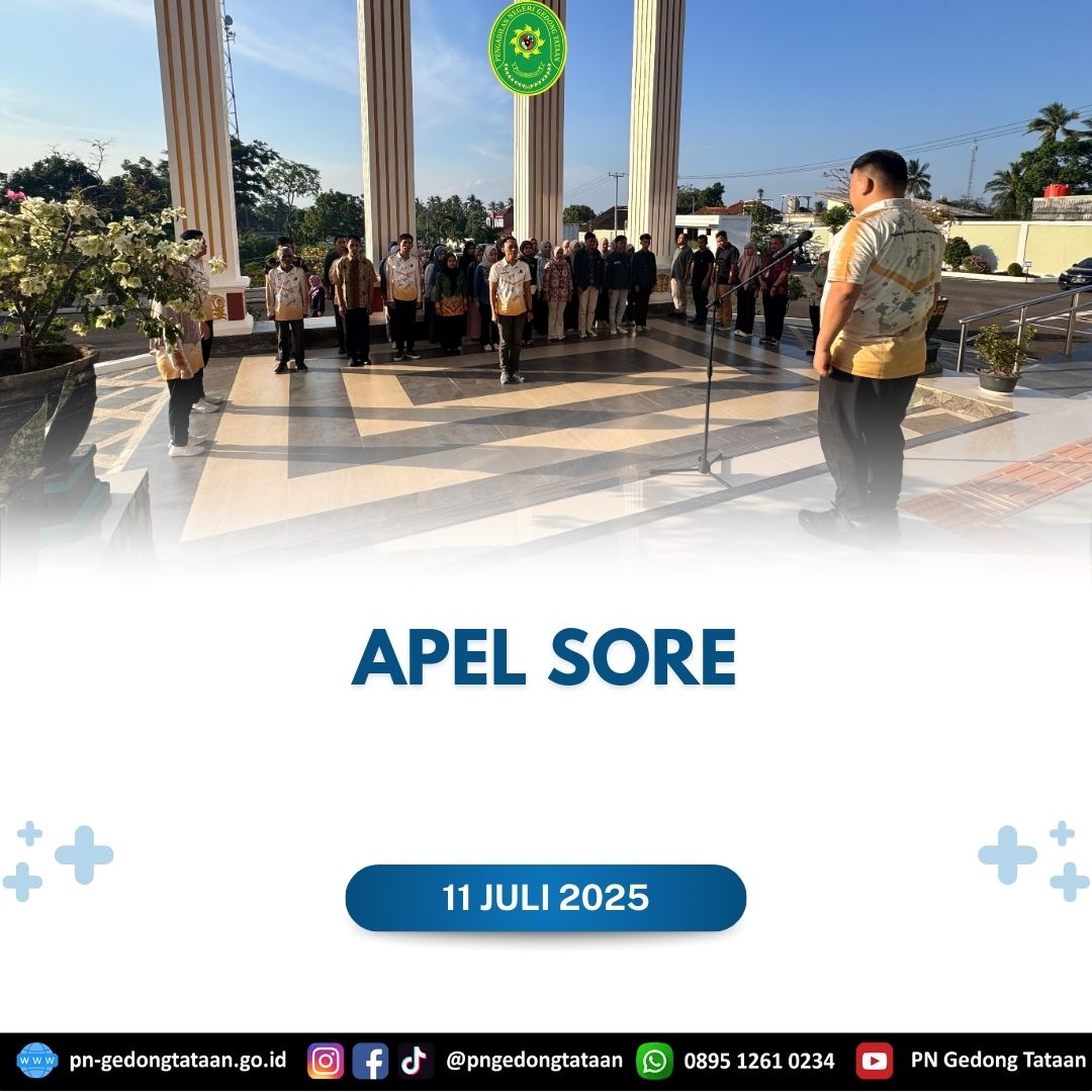 Dilaksanakannya kegiatan rutin apel Jumat sore, diikuti oleh seluruh Aparatur Pengadilan Negeri Gedong Tataan.