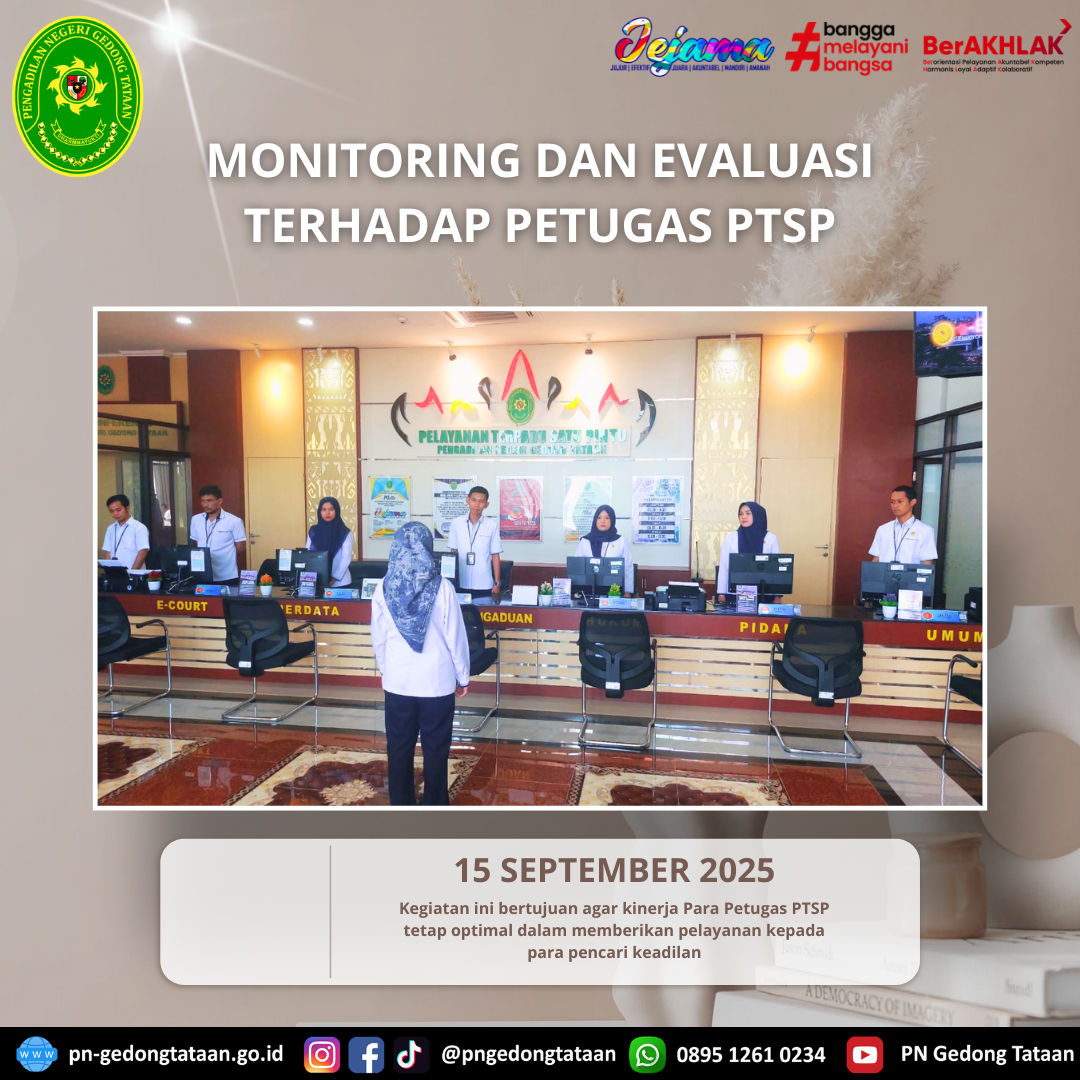 Kegiatan ini bertujuan agar kinerja Para Petugas PTSP tetap optimal dalam memberikan pelayanan kepada para pencari keadilan.