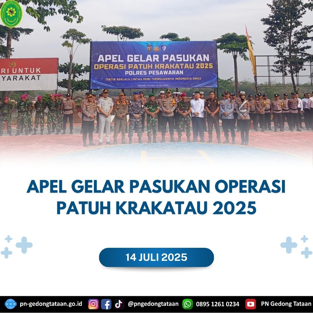 Ketua Pengadilan Negeri Gedong Tataan yang diwakili oleh Wakil Ketua Pengadilan Negeri Gedong Tataan Bapak Dr. Edy Siong,.,S.H.,M.Hum Menghadiri Acara Apel Gelar Pasukan Operasi Patuh Krakatau Tahun 2025 di Lapangan Polres Kabupaten Pesawaran.