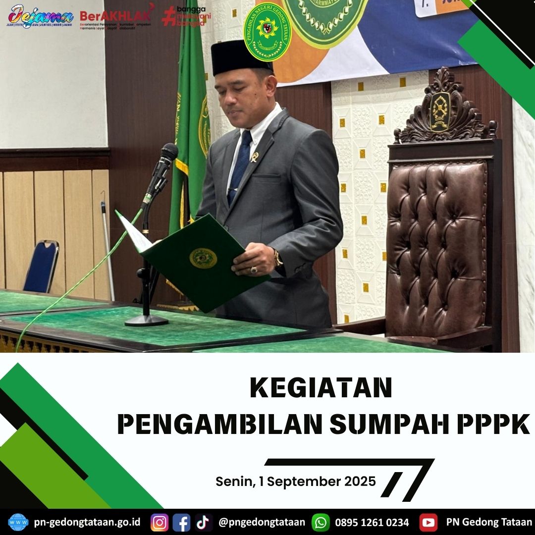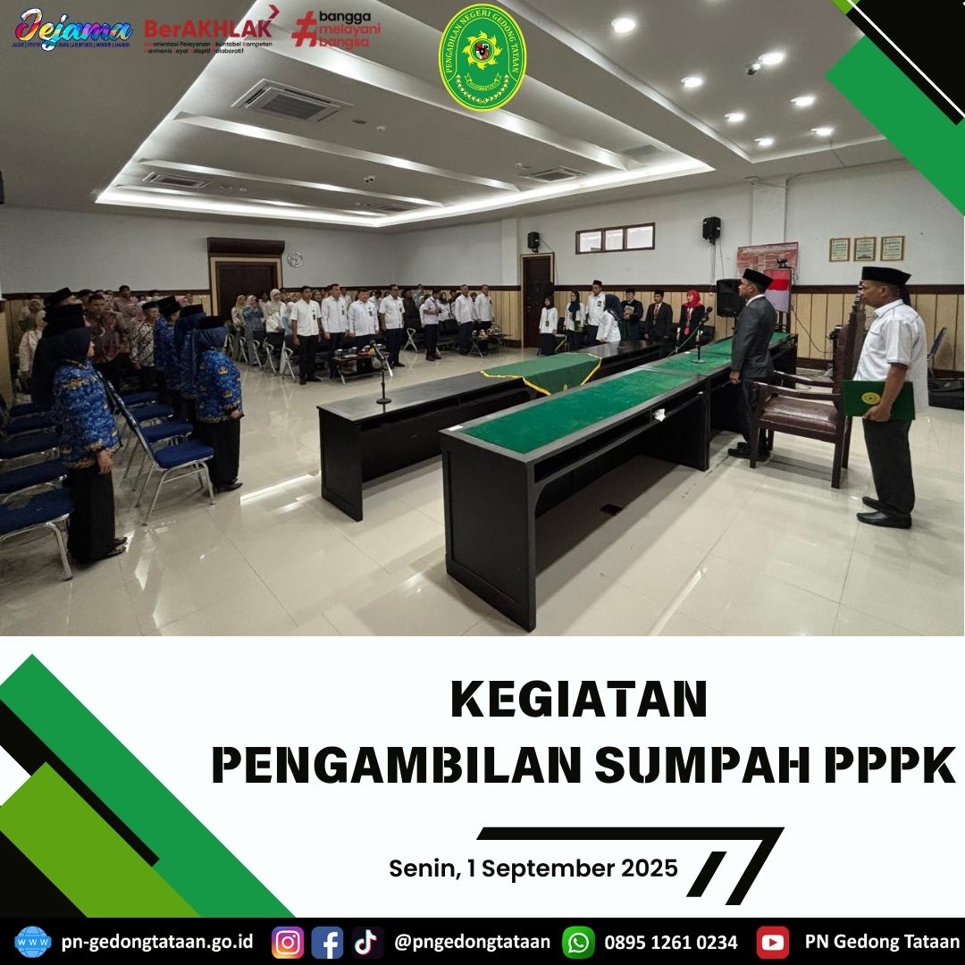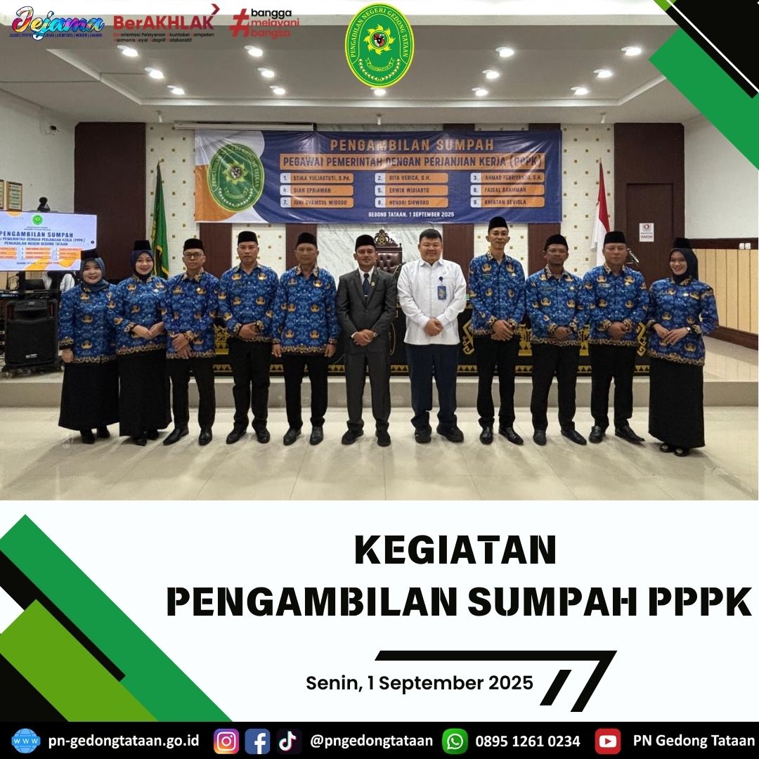 Pengambilan Sumpah PPPK oleh Ketua Pengadilan Negeri Gedong Tataan Bapak Nugraha Medica Prakasa, S.H., M.H bertempat di Ruang Sidang Utama Pengadilan Negeri Gedong Tataan.