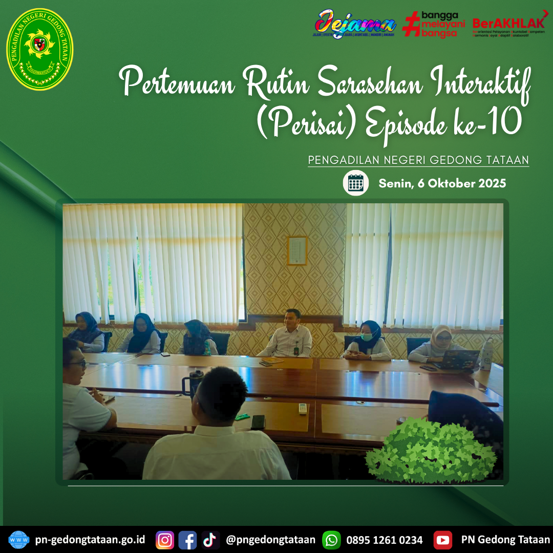 Bertempat di Ruang Command Center Pengadilan Negeri Gedong Tataan, Para Hakim Pengadilan Negeri Gedong Tataan, Panitera, Para Panitera Muda, Panitera Pengganti Pengadilan Negeri Gedong Tataan Mengikuti Kegiatan Pertemuan Rutin Sarasehan Interaktif Perisai) Episode ke-10 secara daring.